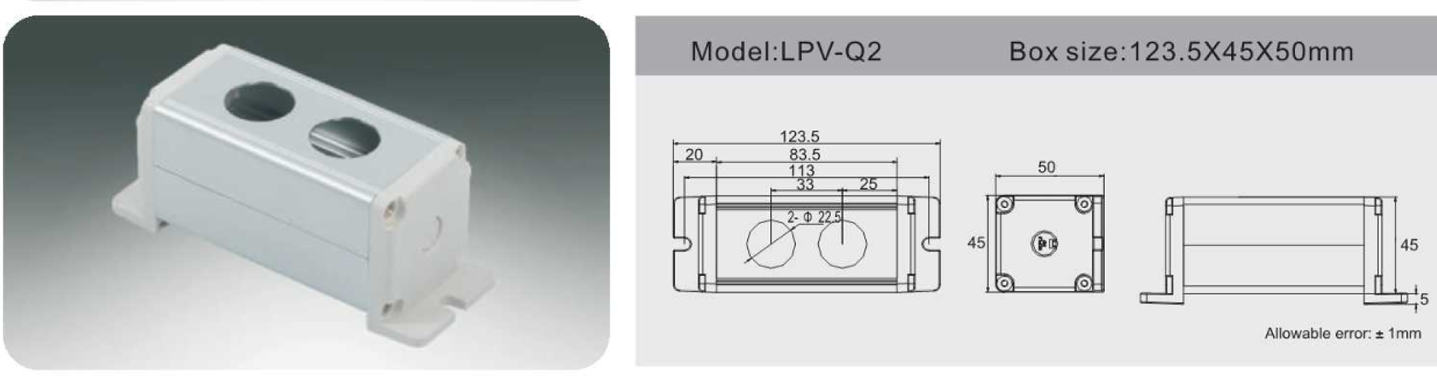 22 mm2LPV-Q2-22123.5 x 45 x 50 mmLPN-Q2-22100 x 45 x 45 mm