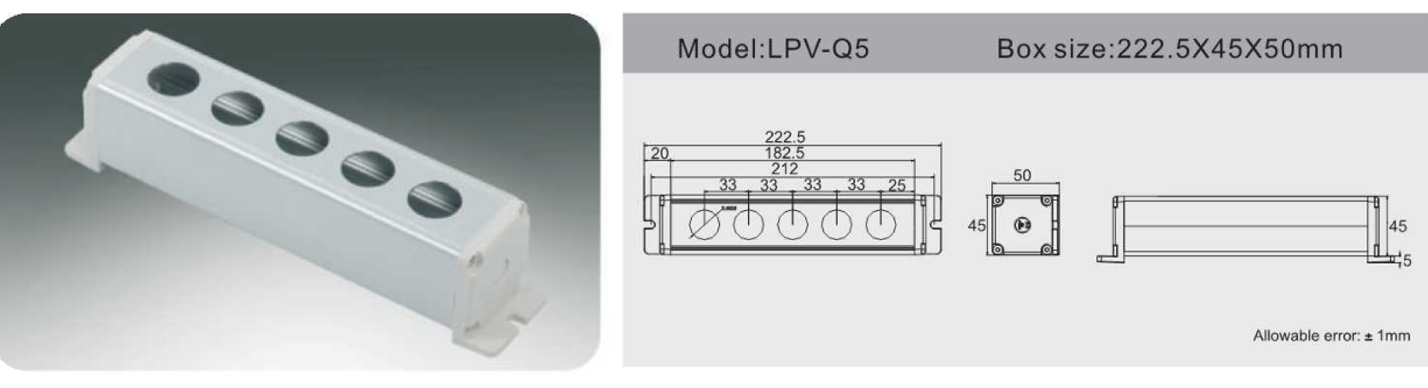 22 mm5LPV-Q5-22222.5 x 45 x 50 mmLPN-Q5-22199 x 45 x45 mm