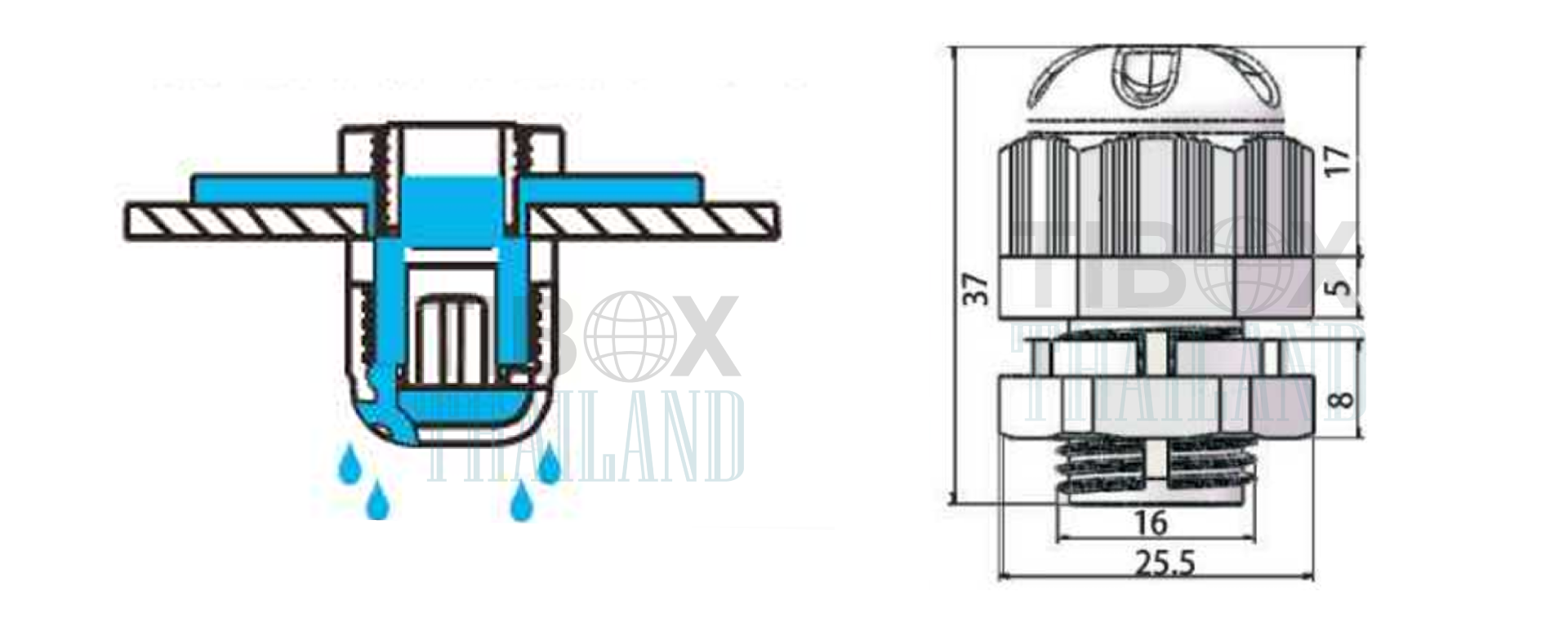 Used to ensure that the condensate is drained from the inside and to ensure that it not subject to external splashing water (maze)