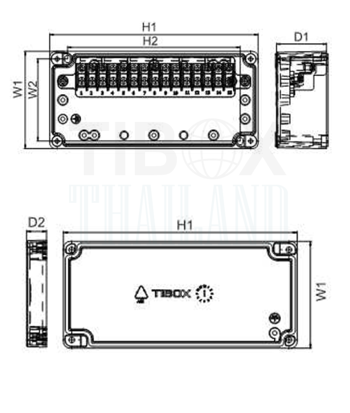 กล่องเทอร์มินอลอลูมิเนียมกันน้ำIP66, TIBOX LV-10P Aluminum Terminal Block Box,10P 10A (Size 127x82x57 mm.)